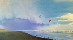 Kite Surfers run ahead of the storm at Foxton